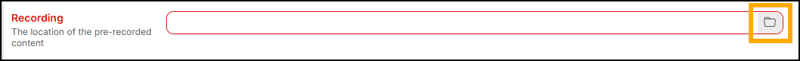 Simulated Live and On-Demand include a field for you to place a recording file link. Click the folder icon to the right and upload required recordings from your computer’s files: