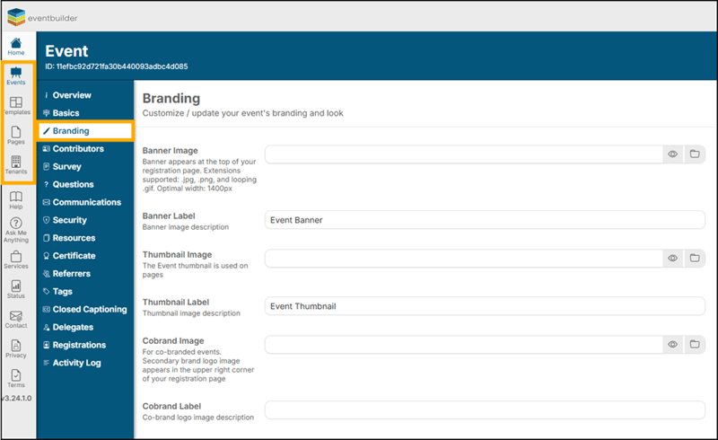 The Branding Step can be found at the Event, Template, Page, and Tenant Level.