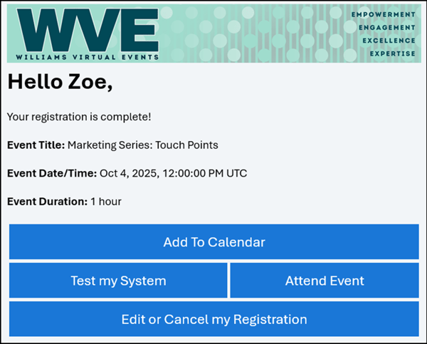 The Registration page button text is dynamic, which allows you to personalize your event by changing the text on your buttons.