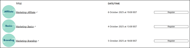 Will appear on the top right-hand corner of your Registration page or listing Page.