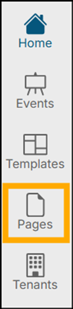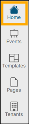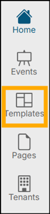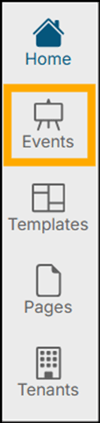 There are five main areas in the master navigation bar: Home, Events, Templates, Pages, and Tenants.