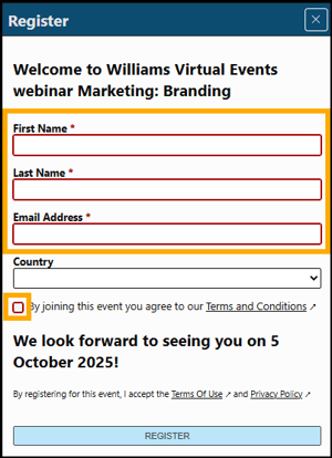 • Use case example:  Display different required terms and conditions for Registrants from different countries.