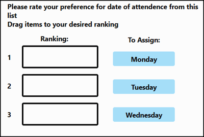 Ranking of provided responses: Allow Registrants to drag and drop options into a preferential order: